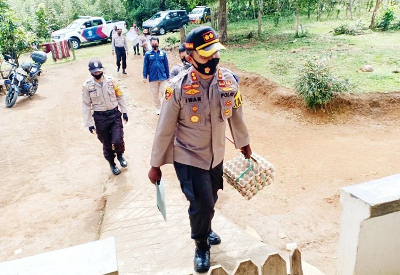 Kepala Kepolisian Resor (Kapolres) Sinjai Ajun Komisaris Besar Polisi (AKBP) Iwan Irmawan ditengah kesibukannya dengan tugas dikantor namun tetap menyempatkan waktunya untuk mengunjungi anak yang menderita penyakit tumor wajah di Lingkungan Aholaie, Kelurahan Mannanti, Kecamatan Tellulimpoe, Kabupaten Sinjai, Selasa (04/08/2020).