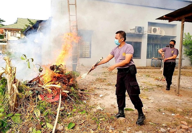 Tampak terlihat personel Polres Gowa gotong royong membersihkan mulai dari halaman sampai kedalam ruangan kantor. Tak hanya itu personel juga membenahi area yang akan dijadikan sebagai lokasi parkir kendaraan yang berada tepat di belakang kantor.