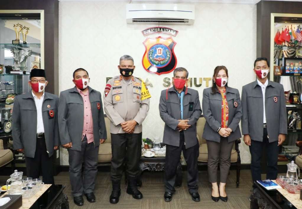 Kapolda Sumut Irjen Pol. Drs. Martuani Sormin, M.Si menerima kunjungan silaturahmi dan audiensi pengurus Forum Koordinasi Pencegahan Terorisme (FKPT) Sumut, Kamis (06/08/2020) di ruang perjamuan Mapolda Sumut.