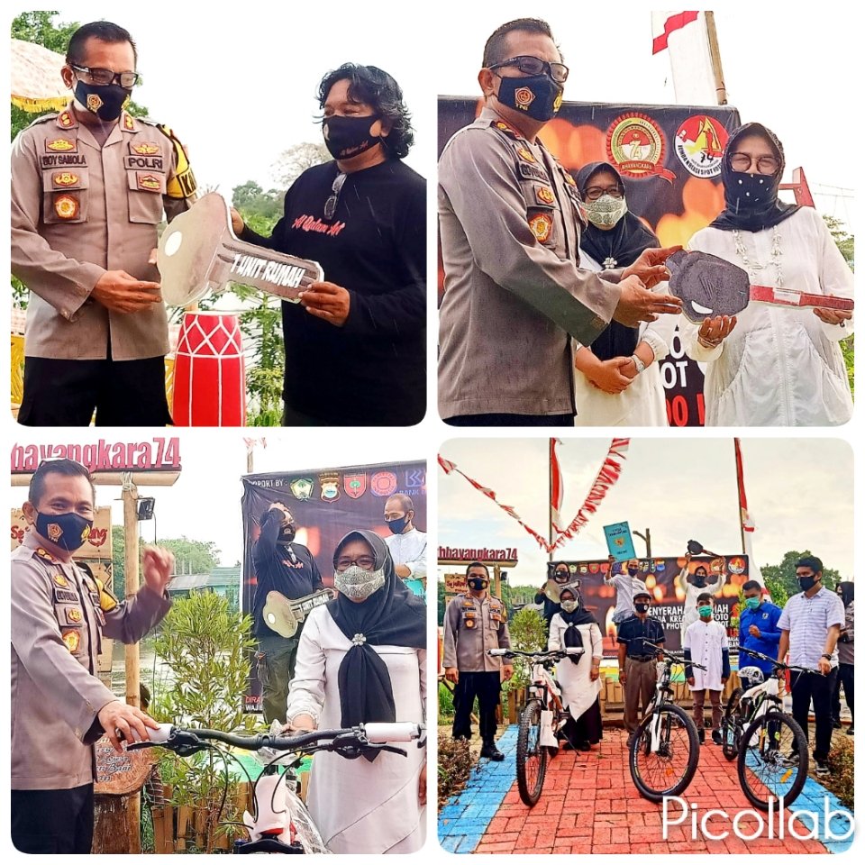 Mengawali penyerahan hadiah tampak Kapolres AKBP Boy Samola menyerahkan hadiah utama kepada pemenang kemudian disambut aplaus dari seluruh tamu yang hadir.