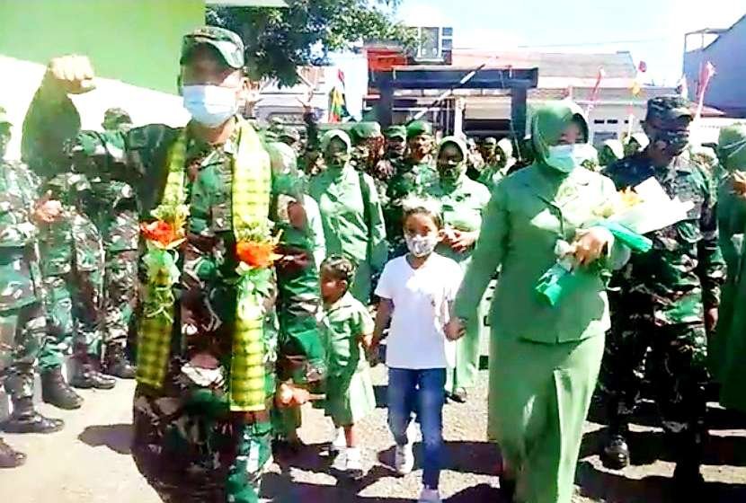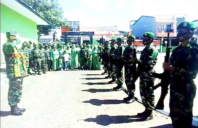 Prosesi penghormatan jajar pasukan yang melibatkan sekitar 102 personel Kodim 1415 Selayar, dipimpin langsung Kasdim, Kapt. Inf. Busrah L. Dan usai prosesi penyambutan dan perkenalan dengan anggota serta jajaran Persit Kartika Chandra Kirana (KCK) Cabang XXIX Kodim 1415 Selayar, Lekol Kav. Adi Priatna bersama isteri, langsung menuju rumah dinas Dandim di Jln Soekarno Hatta, Benteng, untuk beristrahat. (Andi Fadly)