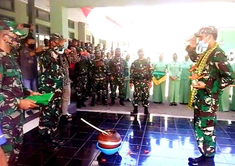 Sebelum memasuki area Makodim 1415 Selayar, Letkol Kav. Adi Priatna yang didampingi Ketua Persit Chandra Kirana (KCK) Cabang XXIX Selayar Aprianita Bukit Priatna, berkesempatan menjalankan standar protokol kesehatan, penanganan Covid-19 dengan mencuci tangan, usai menerima laporan piket jaga.