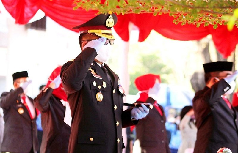 "Kecintaan kita terhadap negeri janganlah pudar termakan zaman, namun harus terus menggelora apa lagi di tahun ini kita merayakan kemerdekaan di tengah pandemi Covid-19," tukas Kapolres Gowa. (*dion)