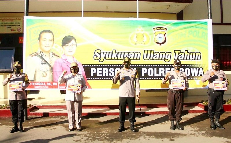 Sebanyak 74 personel yang lahir pada bulan April lalu baru diperingati hari ini Selasa (18/08/2020) pasca pelaksanaan apel pagi dan salah satu diantaranya adalah pejabat utama Polres Gowa Kompol Nursiah yang merupakan Kabag Sumda Polres Gowa.