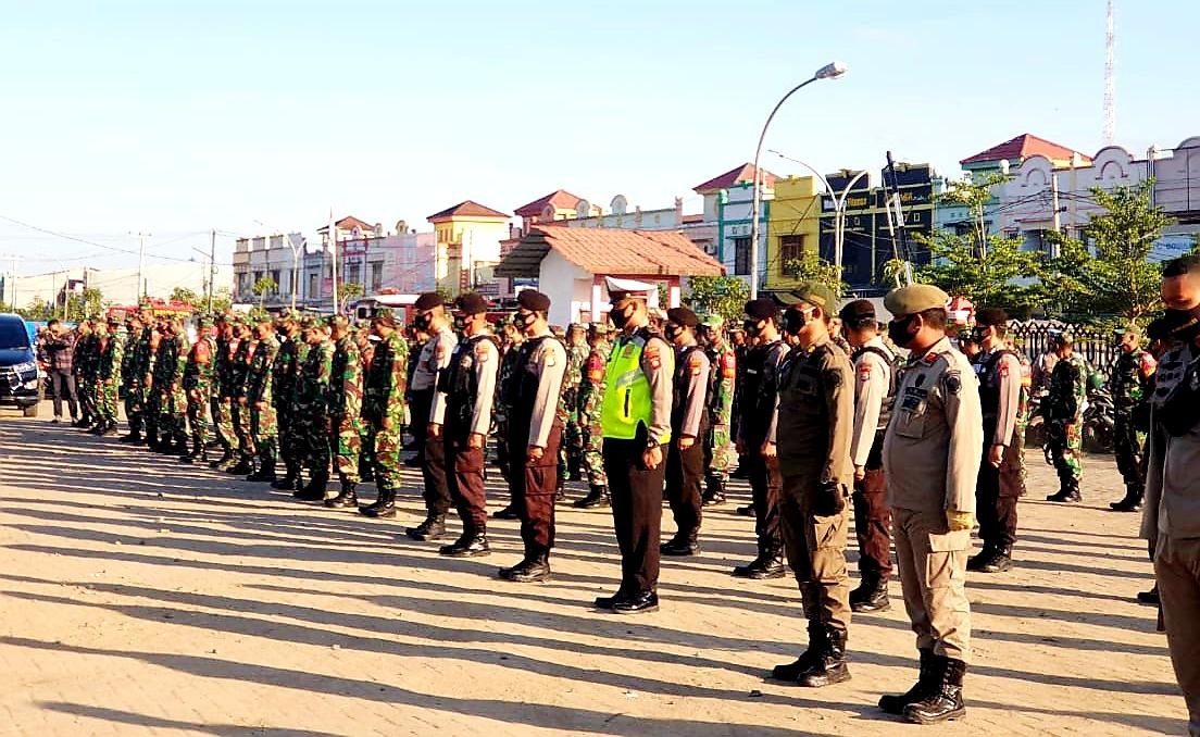 TNI-Polri dalam hal ini personel Kodim 1409 dan Polres Gowa bersama Satpol PP Kabupaten Gowa melaksanakan apel gabungan dalam rangka sosialisasi Perda No.25 Tahun 2020 tentang wajib menggunakan Masker.