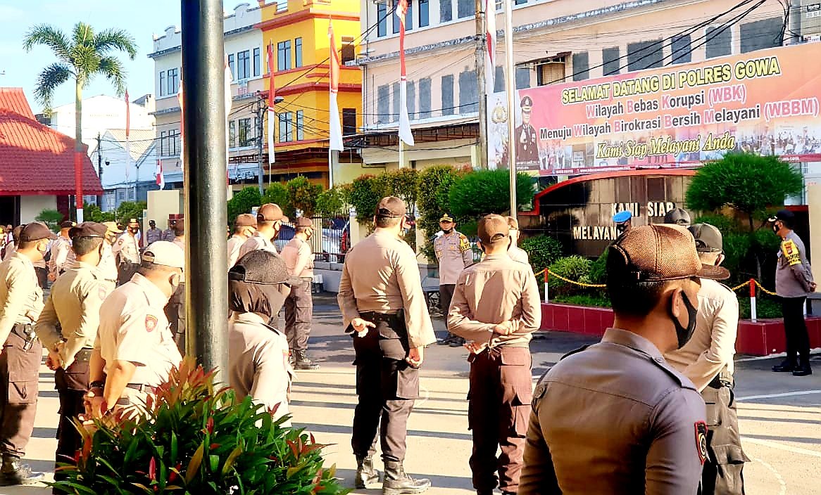 Kapolres Gowa AKBP Boy Samola pada Senin (07/09/2020) pagi memimpin pelaksanaan apel pagi yang turut dihadiri pejabat utama Polres Gowa. Dalam arahannya Kapolres mengucapkan terima kasih atas kinerja seluruh anggota dalam menekan gangguan kamtibmas khususnya dalam tahapan Pilkada yang saat ini berlangsung.