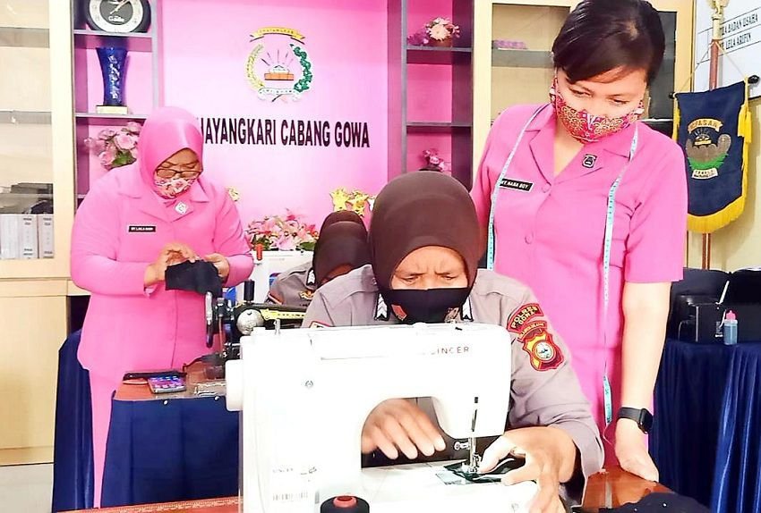 Agar para personel Polwan memiliki keterampilan dalam segala bidang, Ketua Bhayangkari Cabang Gowa Nyonya Hana Boy Samola mengumpulkan para Polwan dan ASN di kantor Bhayangkari Cabang Gowa.