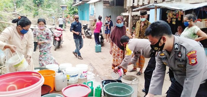 "Saat ini kami memang sangat susah mendapatkan air, kemudian dengan kedatangan bapak polisi ke kampung ini sangat membantu," tambah ibu Juliana mewakili warga yang ikut dalam antrian.