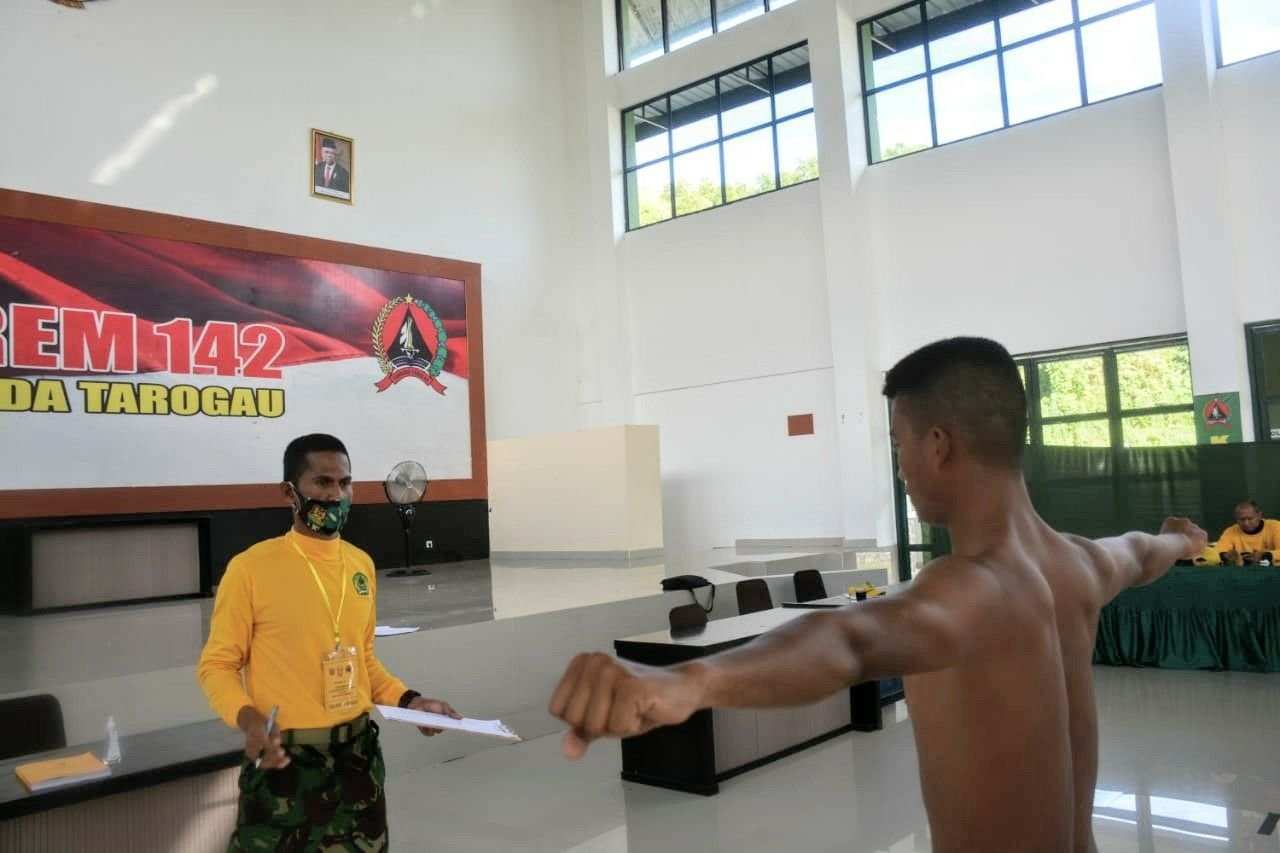 Peserta Caba PK TNI AD TA 2020 Sub. Panda Mamuju hari ini memasuki hari terakhir seleksi Kesegaran Jasmani di Lapangan Tammajarra Korem 142/Tatag, Selasa (8/9/2020).