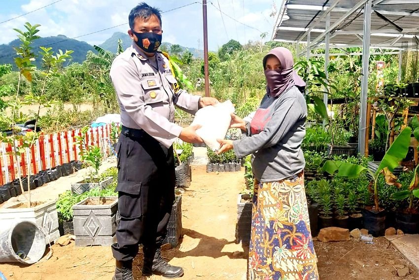 Polri peduli diwujudkan dengan penyaluran beras Kapolri buat masyarakat prasejahtera ditengah pandemi Covid-19 yang diserahkan langsung Kapolsek Manuju Ipda Jamaluddin, Rabu (09/09/2020).