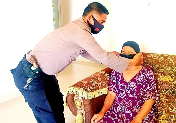 Bhabinkamtibmas Brigadir Mustari mengatakan, berbagai upaya terus kami lakukan guna mengantisipasi penyebaran Covid-19, diantaranya membagikan masker kepada warga serta mengimbau untuk membatasi aktifitas diluar rumah.
