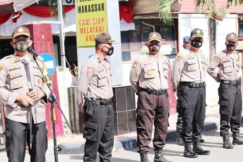 Kapolres Pelabuhan Makassar AKBP Muhammad Kadarislam Kasim pimpin Apel Penertiban dan Pendisiplinan masyarakat dalam penggunaan masker di masa pandemi Covid-19, Senin (14/09/2020).