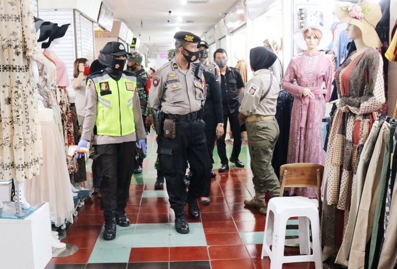 Polres Pelabuhan Makassar bersama TNI dan Satpol PP menggelar Operasi Yustisi dalam rangka menekan penyebaran virus Corona, Senin (14/09/2020) bertempat di pusat perbelanjaan Pasar Butung.