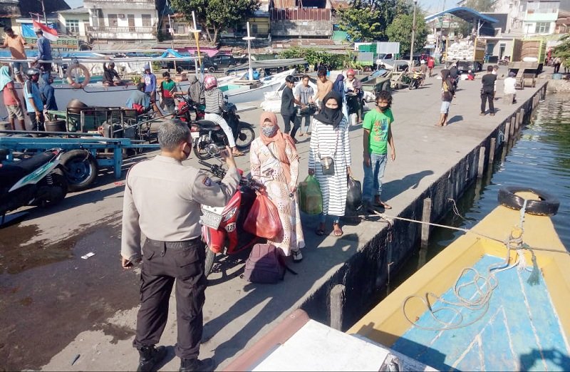 Untuk menjaga kedisiplinan masyarakat khususnya tentang penerapan protokol kesehatan di dermaga Pelabuhan Paotere, Polsek Kawasan Paotere tingkatkan pengawasan naik turunnya masyarakat dari kapal, Senin (14/09/2020).