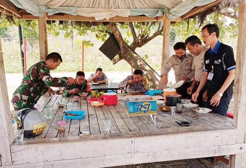 Tingkatkan sinergitas TNI-Polri, personel Polsek Manuju Polres Gowa makan bersama dengan personel Danposramil Manuju bertempat di halaman Polsek Manuju, Kamis (17/09/2020).