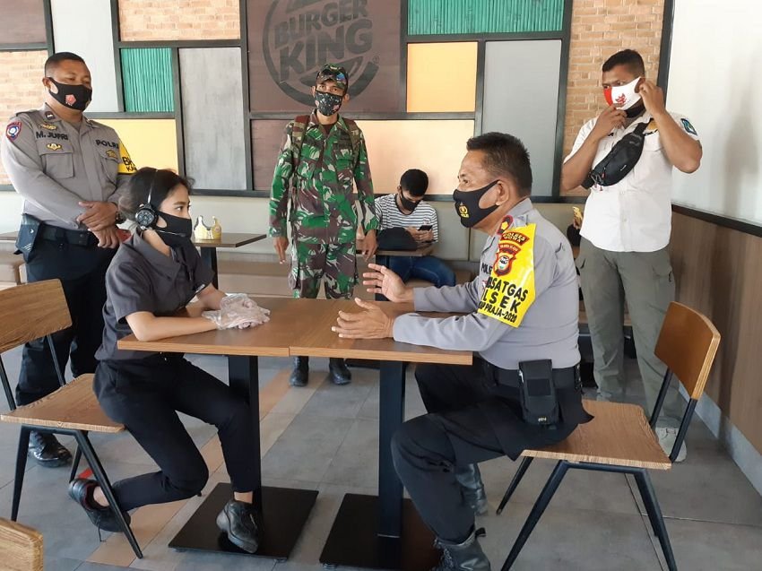 Setelah menggelar Operasi Yustisi di Patung Badik, Jl. Tun Abdul Razak, Kecamatan Somba Opu, Kabupaten gowa, Kapolsek Somba Opu Polres Gowa Kompol, Jamaluddin, didampingi Bhabinkamtibmas Bontoramba, Aipda M. Jufri, SH, bersama dua anggota TNI dan Dua dari Satpol PP, melanjutkan operasi Yustisi ke rumah makan dan pusat perbelanjaan, Rabu (16/09/20) siang.