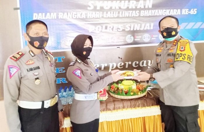 Bertempat di lobby Pratasara Wirya Mapolres Sinjai, Polres Sinjai menggelar acara syukuran dalam rangka memperingati HUT ke-65 Polisi Lalu Lintas tahun 2020, dengan mengusung tema “Road Safety Policing Implementasi Policing Pada Fungsi Lalu Lintas di Era Digital Menuju Indonesia Emas 2045", Selasa (22/09/2020) siang.