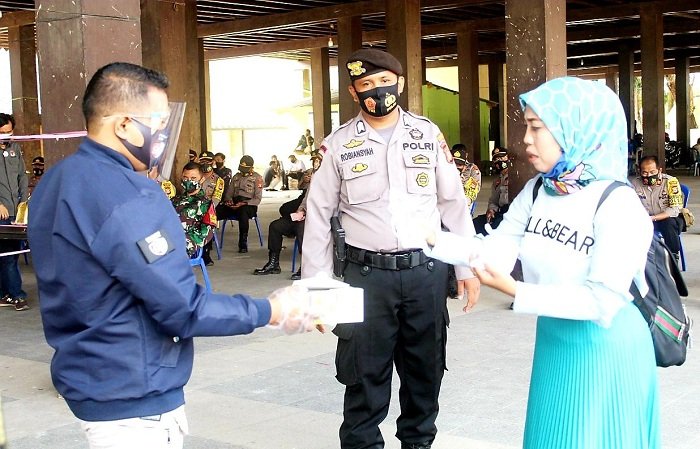 Simulasi yang digelar di pelataran Museum Balla Lompoa pada Selasa (22/09/2020) sore tadi dihadiri Kapolres Gowa AKBP Boy FS Samola, Ketua KPU dan perwakilan dari Bawaslu Kabupaten Gowa.