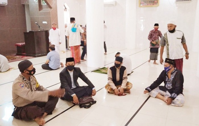 Seperti terlihat saat menyambangi tokoh agama di Mesjid Al Alfaji Jalan Muhammadiyah, Makassar, Bhabinkamtibmas Aiptu Raysid menjalin silaturahmi dalam rangka cipta kondisi di masa kampanye Pilkada Kota Makassar.