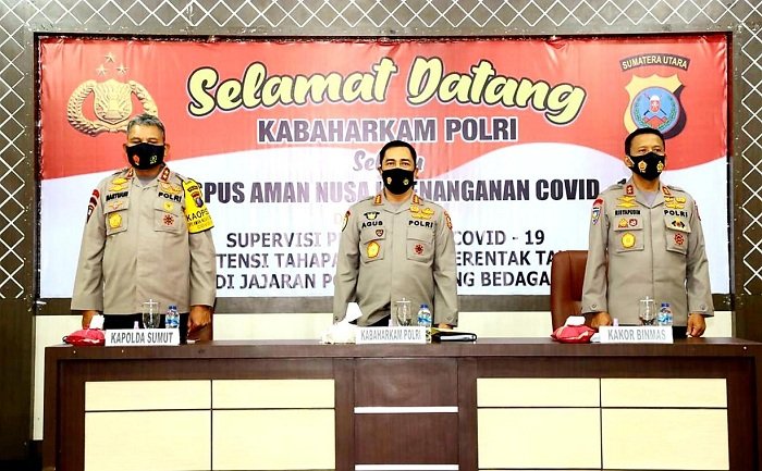 Di hari kedua kunjungan kerjanya di Sumatera Utara, Rabu 30 September 2020, Kepala Badan Pemelihara Keamanan (Kabaharkam) Polri, Komjen Pol Agus Andrianto, melakukan supervisi Operasi Aman Nusa II-Penanganan Covid-19 di Polres Serdang Begadai (Sergai).