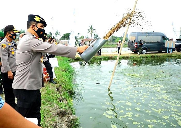 Kabaharkam Polri, Komjen Pol Agus Andrianto, terus galakkan ketahanan pangan nasional dengan mengunjungi lokasi percontohan ketahanan pangan Kolam Ikan Aing, Desa Bengkel, Perbaungan, Serdang Bedagai (Sergai), Sumatera Utara, Rabu (30/09/2020).