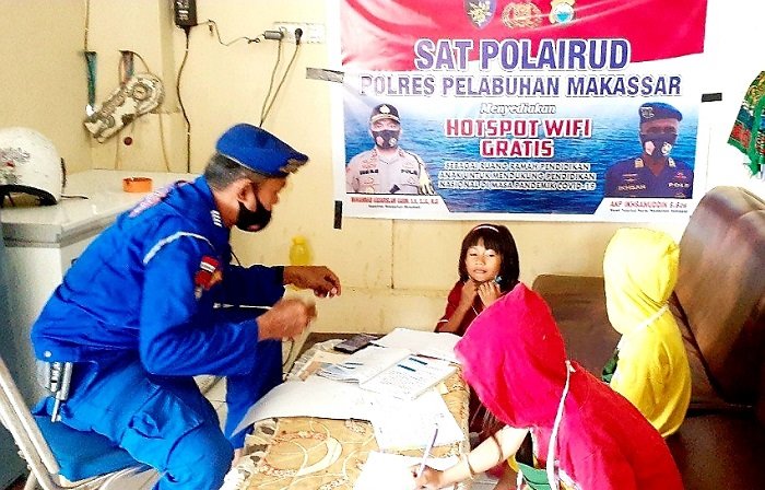 "Saat pandemi Covid-19, proses belajar secara daring di beberapa wilayah Indonesia kerap menimbulkan persoalan. Terutama bagi siswa kurang mampu yang tidak punya gadget dan jaringan internet. Untuk itu kami dari Polri membantu siswa guna belajar daring dengan menyiapkan Wifi dan Handphone," kata Kasat Polair Polres Pelabuhan Makassar AKP Ikhsanuddin.