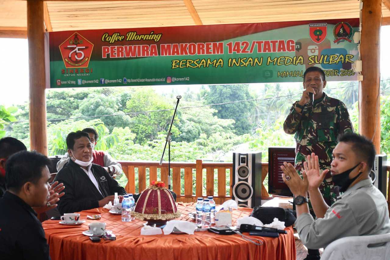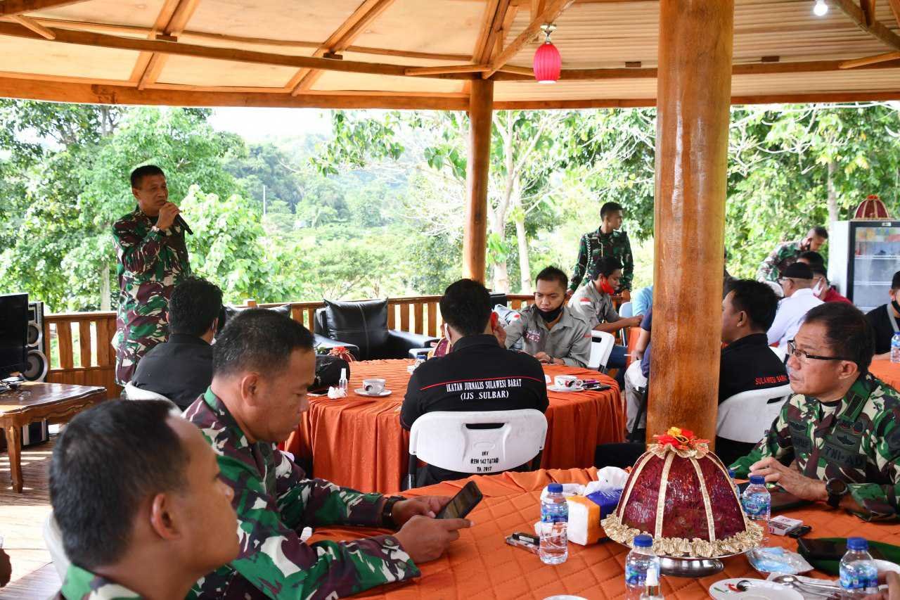 Suasana akrab tercipta antara TNI dan Insan Pers dalam kegiatan "Coffee Morning" yang dilaksanakan di Baruga Korem 142/Tatag, Rabu (7/10/2020).