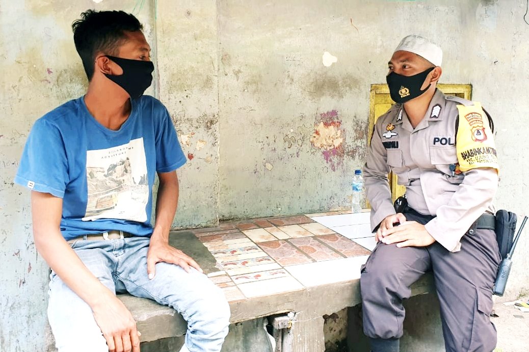 Dalam rangka pelaksanaan Operasi Yustisi, Bhabinkamtibmas Pattingalloang Bripka Hardiansyah menyambangi warga binaannya dengan menyampaikan pesan kamtibmas sekaligus sosialisasikan protokol kesehatan, Rabu (07/10/2020).