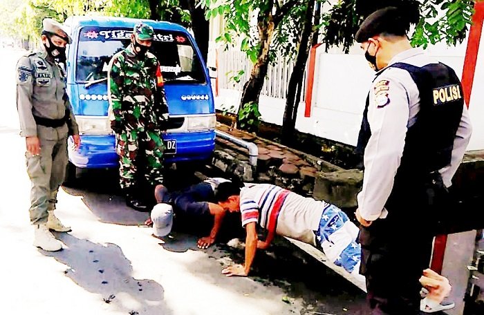 “Pagi ini personel masih menemukan puluhan orang yang tidak mengenakan masker dan semuanya telah didata pada blangko pelanggaran bahkan diberi sanksi ringan berupa gerakan push-up dengan harapan dapat menjadi efek jera bagi mereka,” ujar Aiptu Jamaluddin.