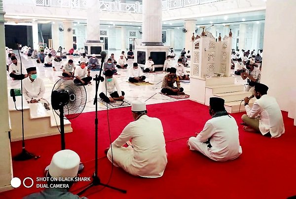 Wakapolres Gowa Kompol Muh. Fajri Mustafa menghadiri kegiatan tausiyah, dzikir dan doa bersama Pemerintah dan masyarakat Kabupaten Gowa, Kamis (15/10/2020) pukul 17.45 Wita.