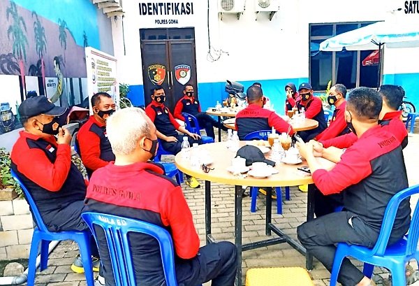 Bertempat di Selasar Kantor Polres Gowa, Kapolres Gowa AKBP Boy FS Samola bersama seluruh pejabat utama (PJU) Polres Gowa menggelar ngopi bareng.