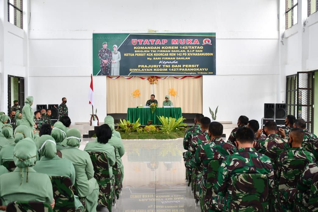 Danrem 142/Tatag Brigjen TNI Firman Dahlan, S.I.P dihadapan Prajurit dan Persit mengatakan, kunjungannya ini telah lama direncanakan, tapi karena kesibukan sehingga baru terlaksana bertepatan dengan kegiatan pembukaan latihan penanggulangan bencana alam yang dipusatkan di Desa Randomayang Pasangkayu.