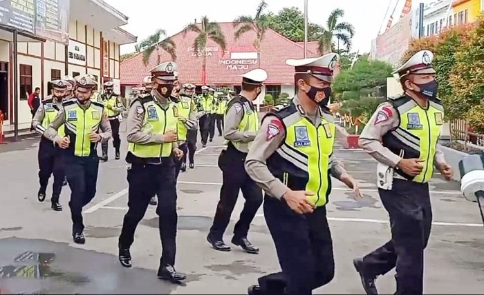 Seperti yang tampak pada pagi itu personel Sat Lantas melaksanakan olahraga pagi dengan lari pagi dilanjutkan jumping jack dan senam kombinasi.