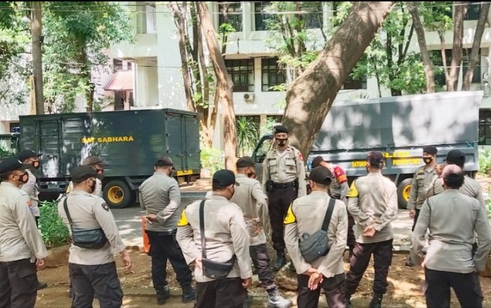 Kembali dua peleton Dalmas Polres Gowa membekap Polrestabes Makassar dalam rangka pengamanan aksi unjuk rasa penolakan Undang-Undang Cipta Kerja Omnibus Law.