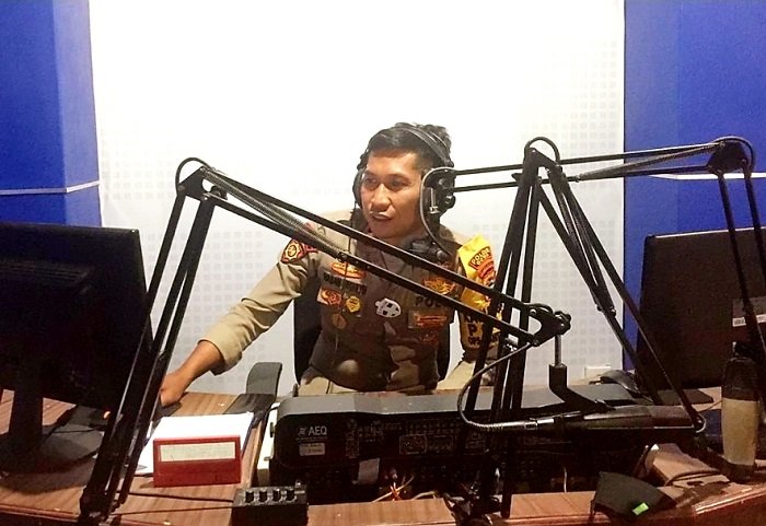 Ini merupakan salah satu cara yang dilakukan Kapolsek Tinggimoncong dalam menyosialisasikan sistem satu jalur di kawasan wisata Malino kepada masyarakat melalui media Radio Gamma 93.7 FM Gowa.