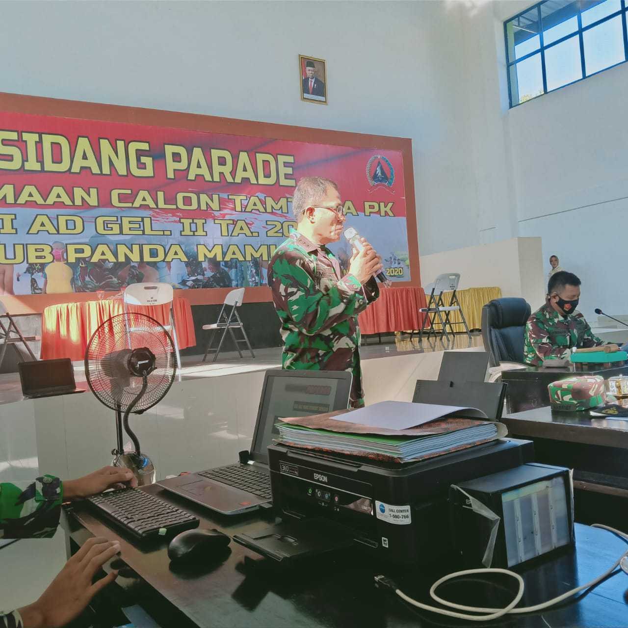 Dihadapan panitia penerimaan Cata PK TNI AD Gel. II TA 2020 Sub. Panda Mamuju Danrem 142/Tatag Brigjen TNI Firman Dahlan mengatakan, Sidang Parade ini adalah salah satu proses tahapan seleksi yang harus dilalui para Calon Tamtama PK Angkatan Darat, mulai dari Pemeriksaan Administrasi, Rik Kesehatan, Kesamaptaan Jasmani hingga tes Postur.