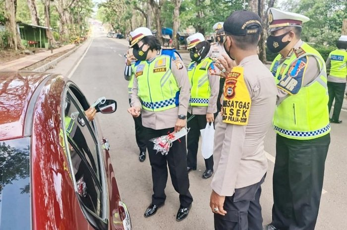 "Hal tersebut sebagai bentuk ungkapan terima kasih atas kesadaran masyarakat, utamanya pengendara, selain tertib berkendara mereka juga mematuhi protokol kesehatan dengan memakai masker," jelas AKP Mustari, SH.