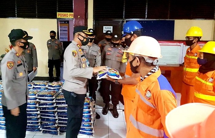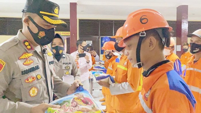 Kapolres Pelabuhan Makassar AKBP Muhammad Kadarislam Kasim mengundang puluhan petugas kebersihan Kota Makassar di Mapolres Pelabuhan Makassar, Selasa (10/11/2020).
