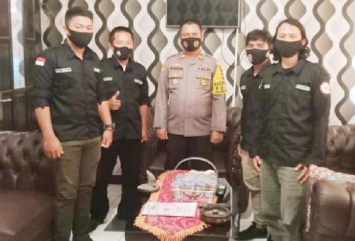 Ketua organisasi Benteng Tangangayya Gowa, Abdul Muin didampingi anggotanya melakukan silaturahmi ke Polsek Pallangga untuk melakukan kegiatan sosial yakni pembagian masker yang akan dilaksanakan di Pasar Cambaya.