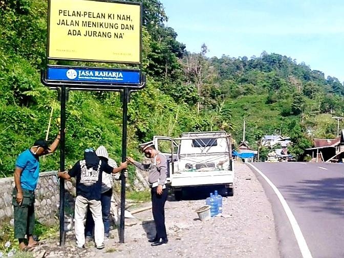 Kanit Laka Sat Lantas Polres Gowa Ipda Ahmarullah Sahran mengungkapkan, kami memasang papan bicara yang berisi imbauan bertuliskan "Pelan Pelan Ki Nah Jalan Menikung dan Ada Jurang Na" sebagai bentuk kepedulian Sat Lantas Polres Gowa dan PT Jasaraharja kepada pengendara setiap memasuki salah satu daerah rawan terjadinya laka lantas (blackspot).