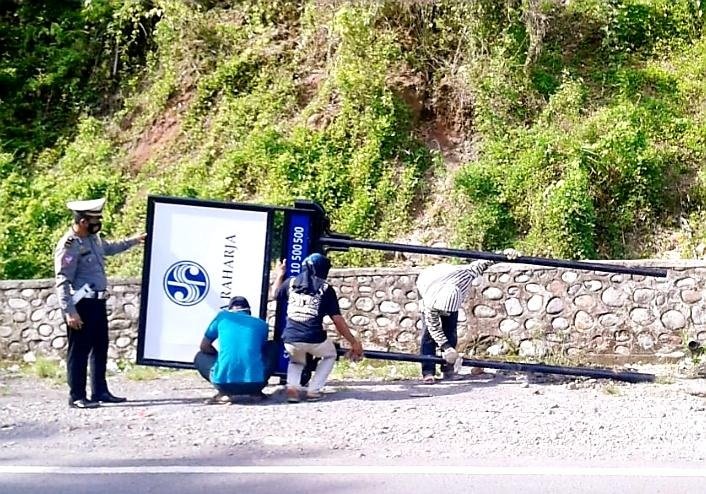"Selain pemasangan papan bicara kami juga menyosialisasikan UU No.2 Tahun 2009 tentang lalu lintas angkutan jalan kepada pengendara yang melintas," pungkas Ipda Ahmarullah Sahran.