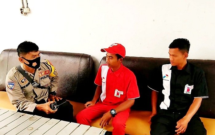 Kedua pemuda ini ditemukan tidak menggunakan masker saat melakukan pekerjaannya sebagai karyawan di salah satu depot pengisian BBM di Mengkendek.