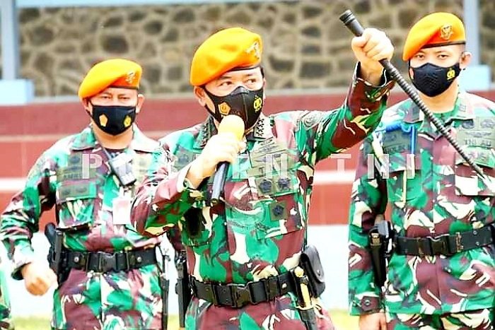 Panglima TNI memerintahkan kepada prajurit Korps Baret Jingga untuk terus meningkatkan profesionalismenya karena profesionalisme adalah nafas bagi setiap prajurit. Untuk itu tetaplah berlatih dan berlatih. “Tugas TNI adalah menjaga Ibu Pertiwi dari gangguan dan ancaman atau musuh yang memiliki niat jahat untuk menginjak-injak persatuan bangsa. Komando…., Komando… ,” teriak Panglima TNI. (*)
