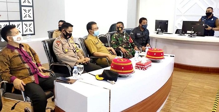 Kapolres Gowa AKBP Budi Susanto, SIK mengikuti Rapat Koordinasi (Rakor) Analisa dan Evaluasi Pelaksanaan Kampanye Pemilihan Kepala Daerah (Pilkada) Serentak tahun 2020. Kegiatan rakor tersebut diadakan secara virtual di Peace Room A'Kio, Kantor Bupati Gowa, Senin (23/11/2020) siang.