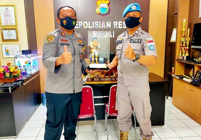 Kapolres Sinjai AKBP Iwan Irmawan, SIK, M.Si mengapresiasi prestasi dan pengabdian Bripka Asran, SH yang telah selesai melaksanakan misi perdamaian PBB dengan baik.