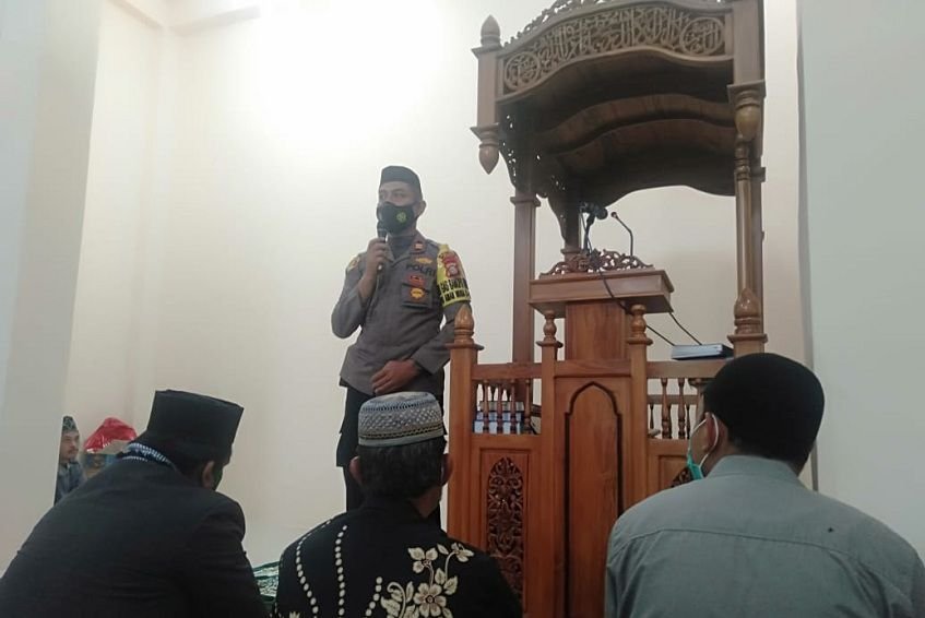 Setelah melaksanakan sholat jumat, Kapolsek Bontomarannu Iptu Bahtiar, S.Sos, SH, MH menyampaikan imbauan Kamtibmas kepada jamaah dan mendukung program pemerintah dalam percepatan memutus mata rantai covid 19 dengan mematuhi Protokol Kesehatan.