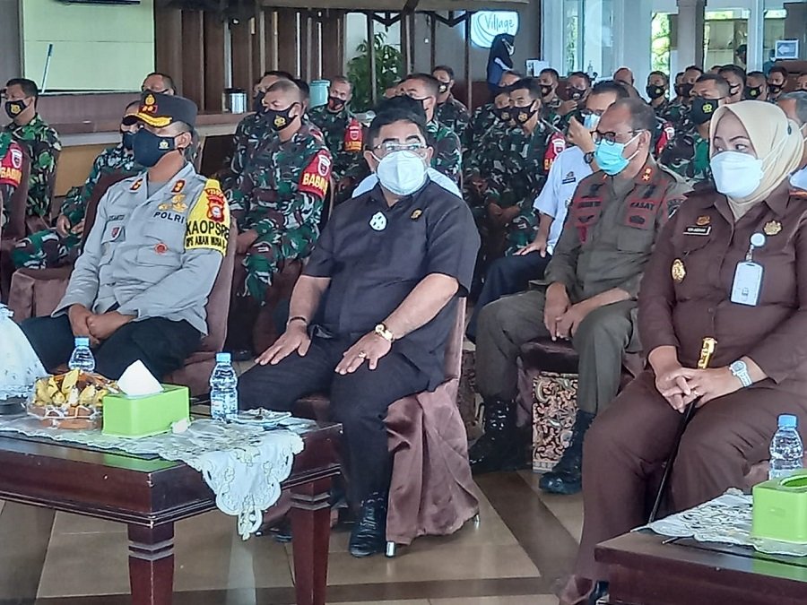 Kapolres Gowa AKBP Budi Susanto, S.I.K menghadiri penutupan dan penyerahan Hasil TNI Manunggal Membangun Desa (TMMD) ke-110 tahun 2021 Kodim 1409/Gowa di Aula Padivalley, Kabupaten Gowa, Rabu (31/3/21).