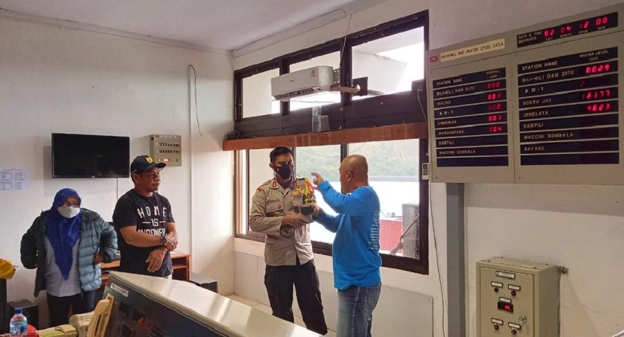 Dalam kunjungannya, Kapolres Gowa menyempatkan diri melakukan komunikasi dengan petugas bendungan yang selalu siaga dilokasi dan berbincang dengan petugas jaga selanjutnya melihat alat pengukur ketinggian air bahkan langsung memantau kondisi bendungan yang dikenal terbesar di Sulsel itu.