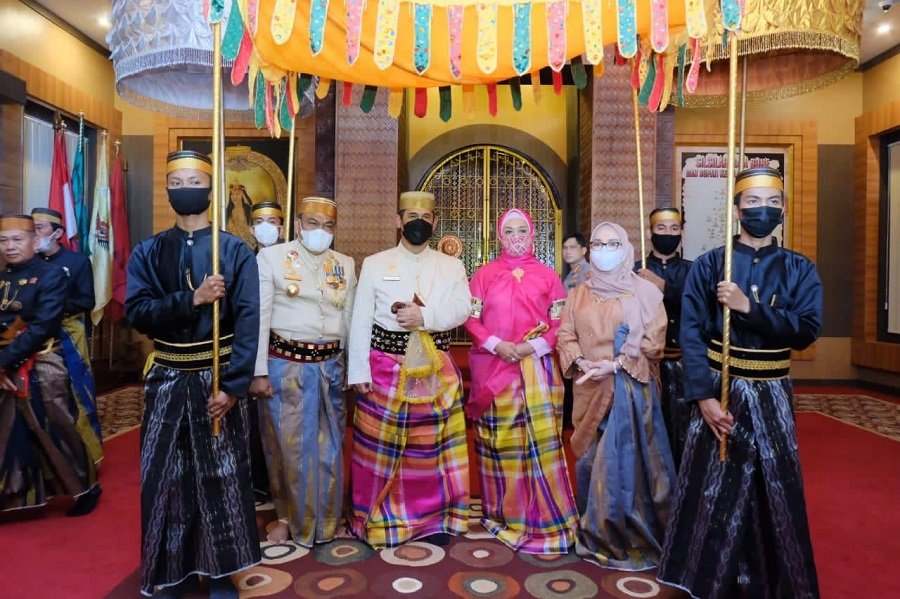 Pemberian gelar Tamu Kehormatan oleh Bupati Bone ditandai dengan pemasangan sarung sutera, jas tutup adat Bone, songkok Recca', dan Kris di Museum Arajange, Kompleks Rujab Bupati Bone.