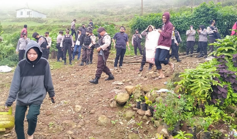 Bertempat di kampung Mandakko Lingkungan Buluballea Kelurahan Pattapang Kecamatan Tinggimoncong Kabupaten Gowa personel gabungan Polres Gowa melaksanakan pengamanan eksekusi lahan oleh Pengadilan Negeri Sungguminasa kelas 1/A, Rabu (7/4/2021).